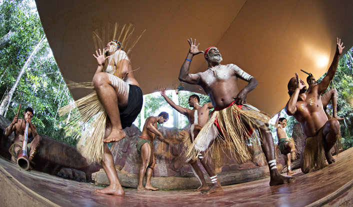 Travel to Kuranda aboard the Kuranda Scenic Railway with commentary - one of the world's most spectacular railways. Free time to explore Kuranda Village. Visit the award-winning Rainforestation Nature Park and experience the amphibious Army Duck Tour of the rainforest, wander through the tropical Fruit Orchard, enjoy the powerful performance of the Pamagirri Aboriginal Dancers in the rainforest amphitheatre, join your Pamagirri Guide on the Dreamtime walk or spear throwing and didgeridoo demonstrations, try your hand at boomerang throwing and get up close to the animals in the Koala and Wildlife Park. Return to Cairns on the Skyrail Rainforest Cableway and glide silently over 7.5km of pristine World Heritage Rainforest in gondola cabins.